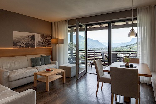 bieten den ganzen Tag über Sonne und einen atemberaubenden Blick über Meran bis nach