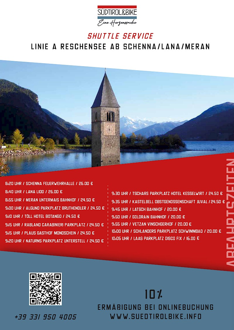 Book your bike shuttle to Lake Reschen online using the QR code or this